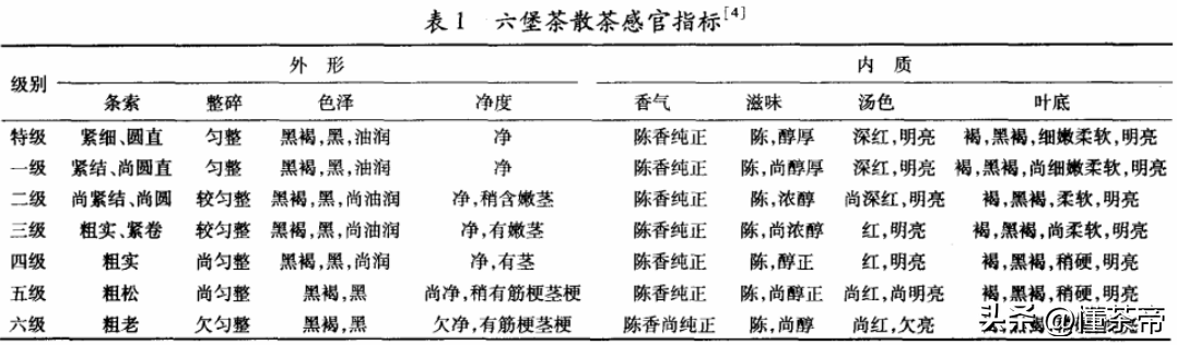 上市的六堡散茶应符合下图中的感官要求。但是,有些六堡茶在制作或者存放过程中由于操作不当,难免产生一些品质缺陷。