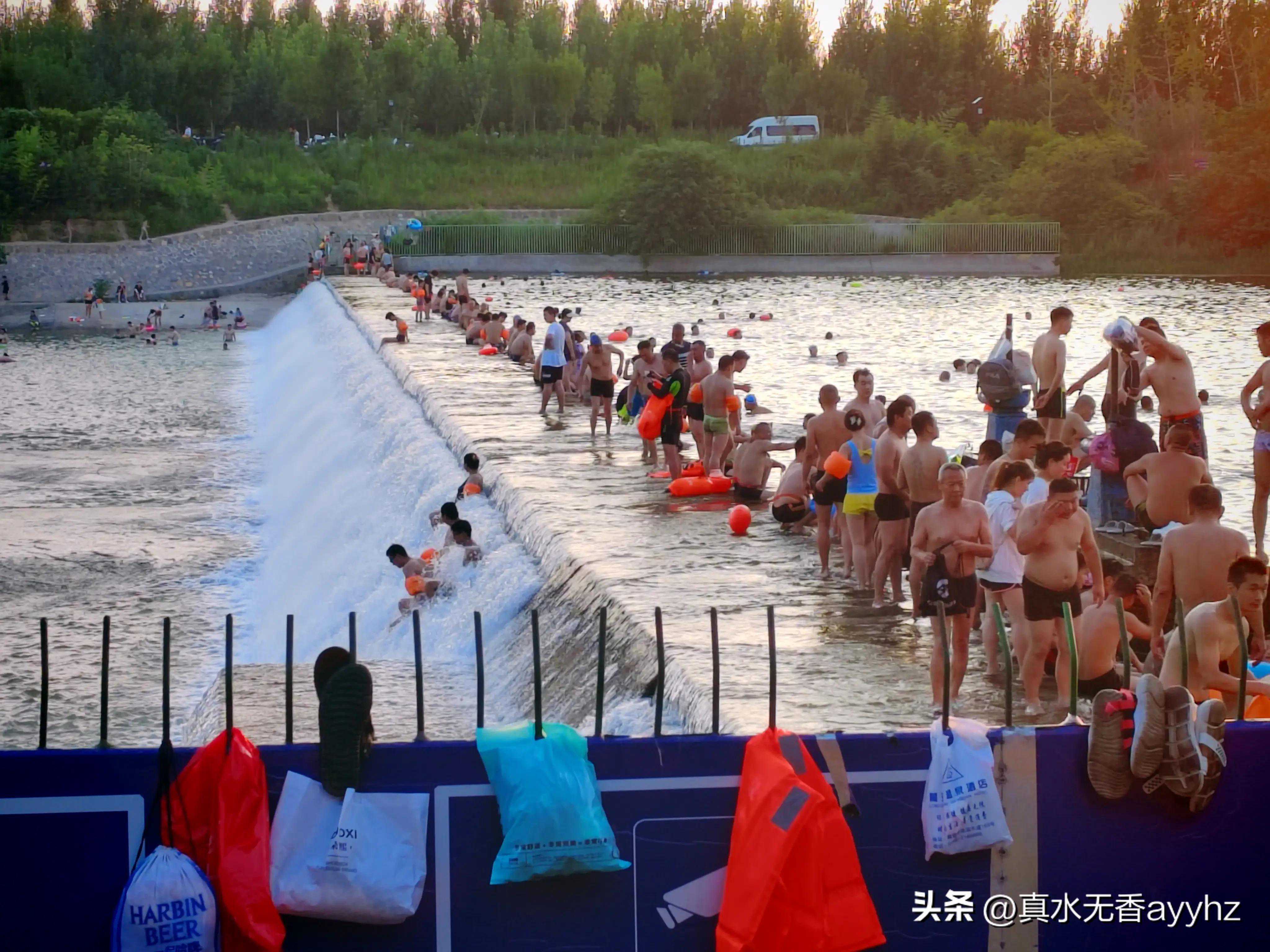 豫北的淇河,号称中国北方最清洁的河流。淇水汤汤出太行,淇河鹤壁新区段,因地势落差大,筑有几道水坝,坝前河水清澈,坝下白浪翻涌,自然成了游泳爱好者的天堂,甚至吸引着周边安阳、濮阳、郑州的游泳者们前来畅游,虽然每年都会有人被淇河“带走”,但却依旧阻挡不了游泳者们的热情,加上今年连续超40度的“烧烤”天气,淇河,俨然成了一个大泳池。