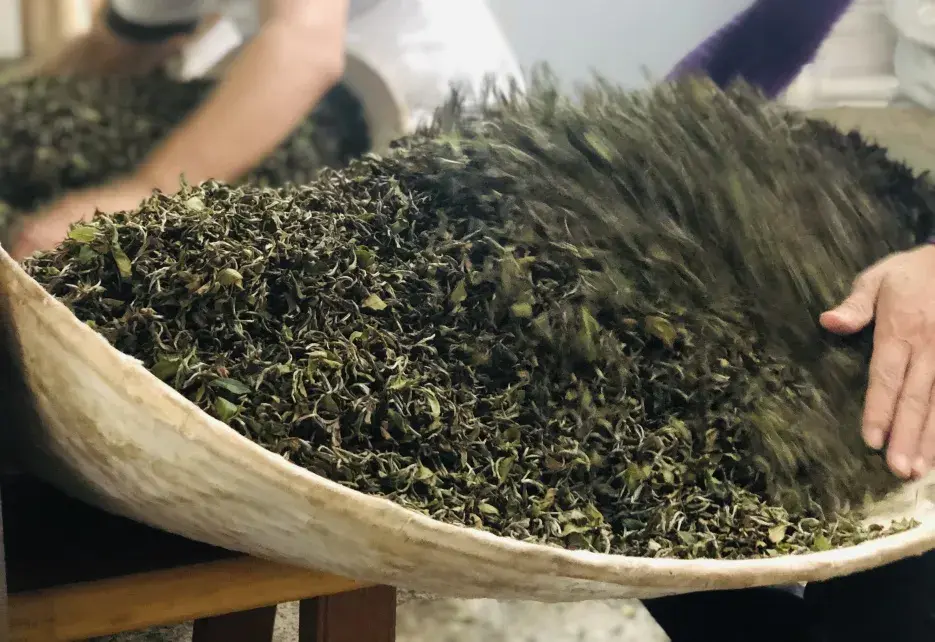 经“晒青、摊晾、做青、发酵、炒青…”等工序精制