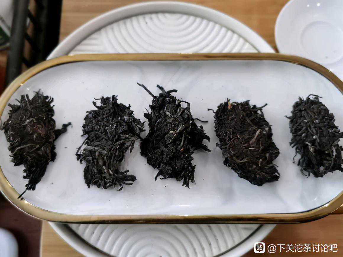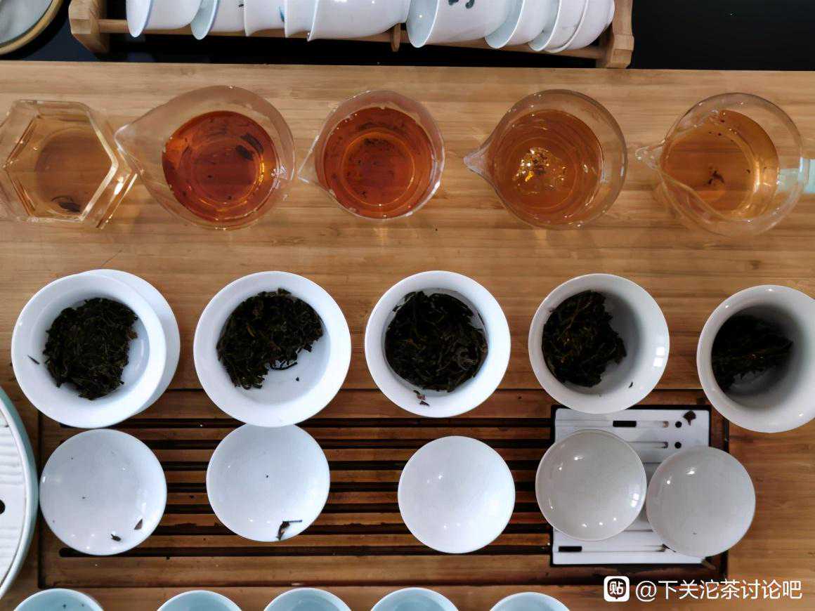 洗茶两遍,闻茶底香气,704为蜜香型,干仓无仓味;808为木香加些许蜜香,有一定仓味,仓储不佳;903为蜜香加果香,馥郁广仓明显;102为蜜香中略有烟香,仓储偏广仓;205为轻烟加蜜香还有些许木香,比较典型的广仓。