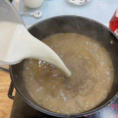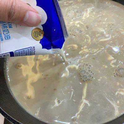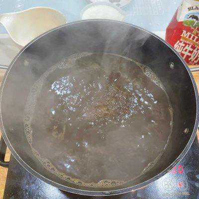 5、倒入淡奶油煮开(加入茶叶的同学煮开后就可以把茶叶打捞起来啦)