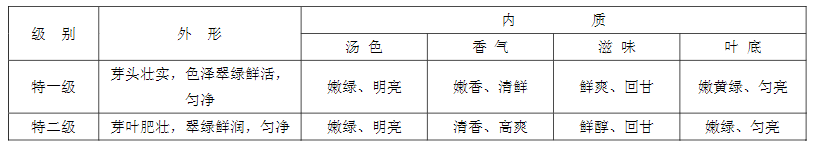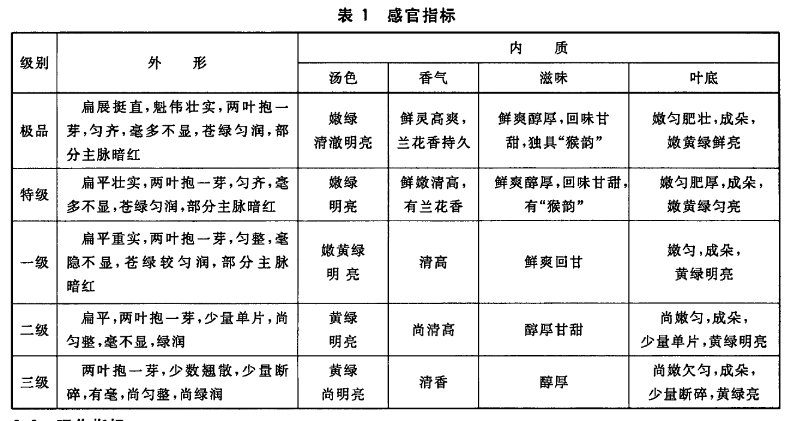 黄山毛峰感官指标