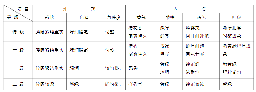 六安瓜片感官指标