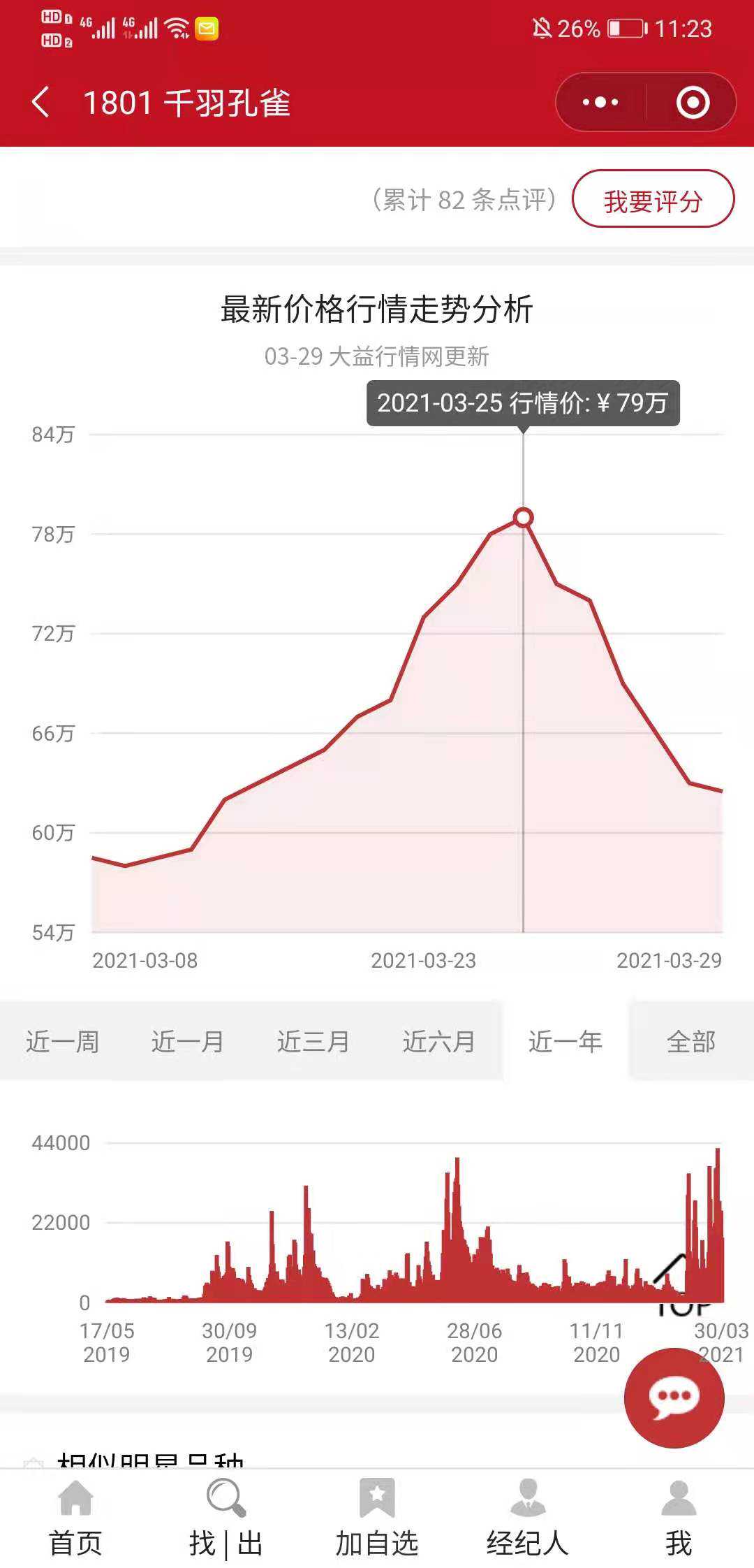 大益行情网上显示的“1801千羽孔雀”价格走势。