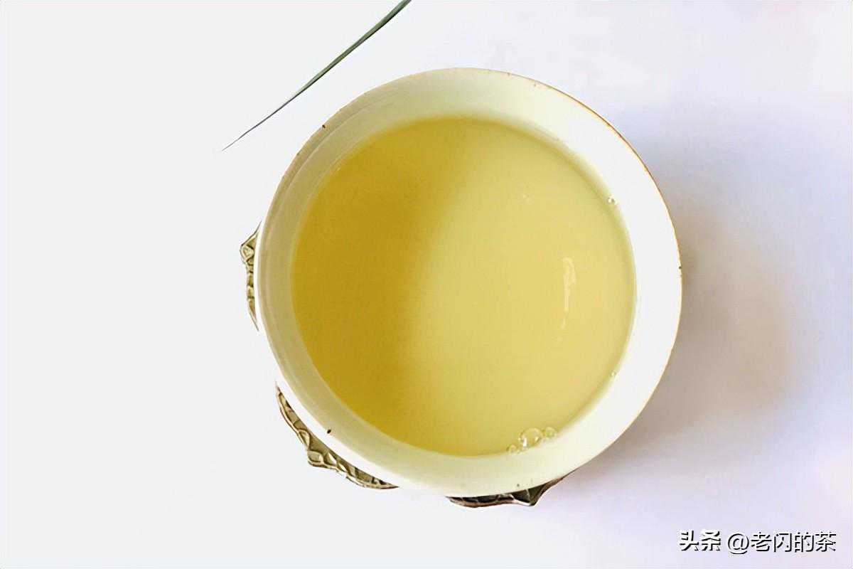 汤色上看,金黄明亮,黄中有一点偏绿;