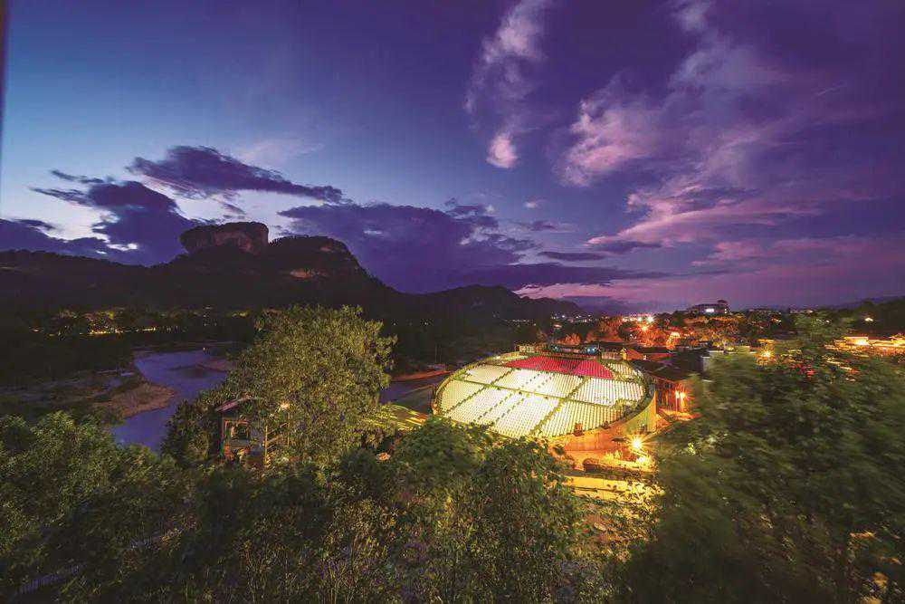 武夷山,集世界自然遗产地、世界文化遗产地、世界武夷岩茶(大红袍)制茶技艺非物质文化遗产地于一身。在深厚的文化土壤中孕育出的《印象大红袍》,将“三遗”拥入怀中,成为世界最大的“茶馆”,如一杯刚冲泡的正岩肉桂,隽永绵长、香气扑鼻,迷醉了越来越多的观众,让更多游客驻足,观赏夜色中的武夷山。