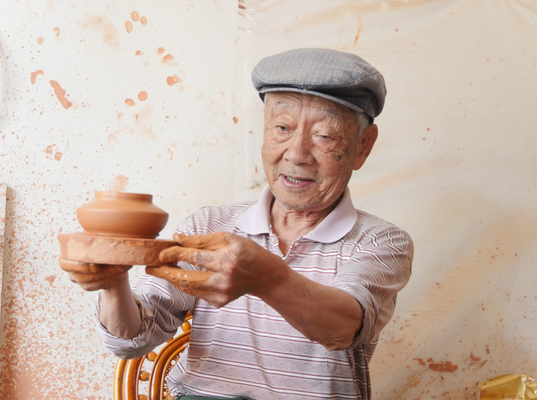 “我14岁开始做陶时,还没有电动拉坯机,主要靠脚踩,很费力。后来有了电动拉坯机,拉坯就轻松多了,现在这么大年纪还能继续做陶,离不开电动拉坯机的帮助。”