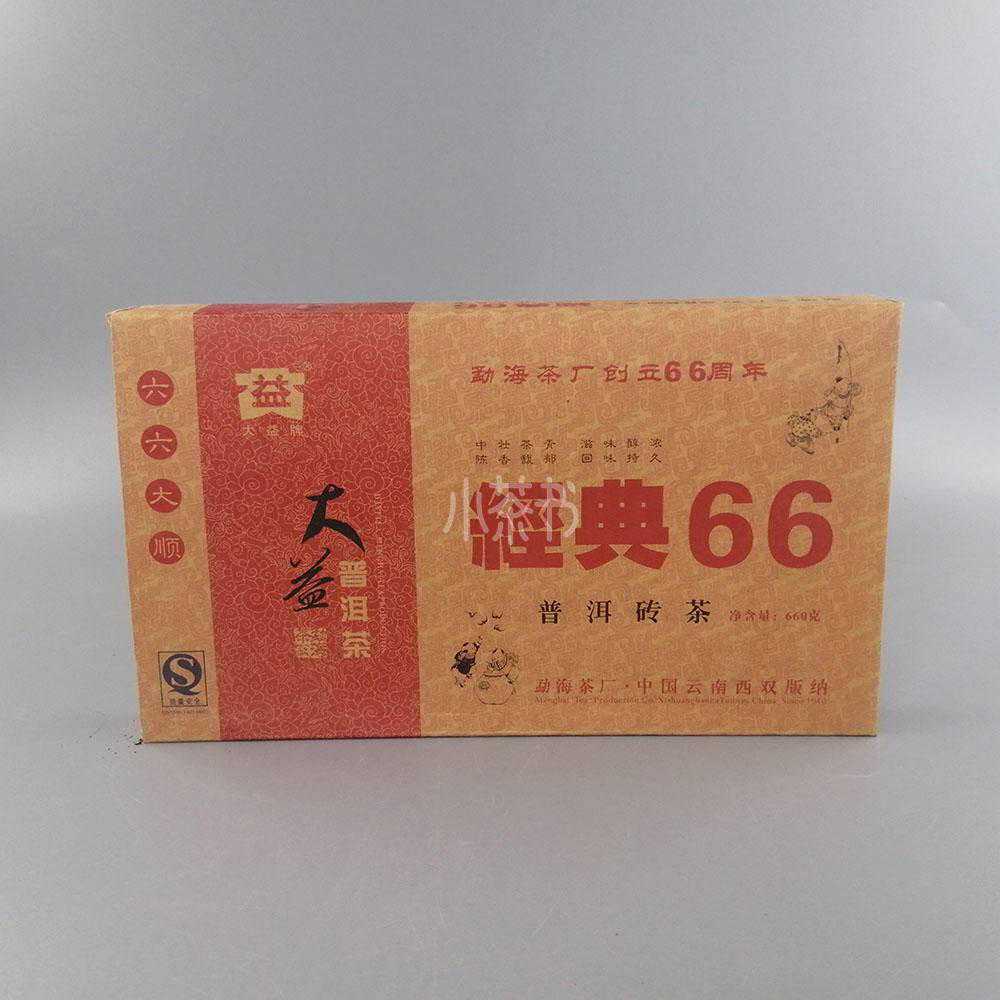 品鉴:经典66普洱茶是勐海茶厂为纪念创建茶厂66周年(1940~2006)出品的鼎立之作,是对勐海茶厂66年呕心沥血制茶的沧桑风雨之完美总结。经典66主要的研发思路是制作顺滑细腻的普洱茶尖端产品,地道而深重的勐海味道但毫无苦涩之感,甜香挂满口腔!发酵适度,茶品色泽褐红,滋味醇厚,汤色红亮,综合品质高,为大众所推崇。
