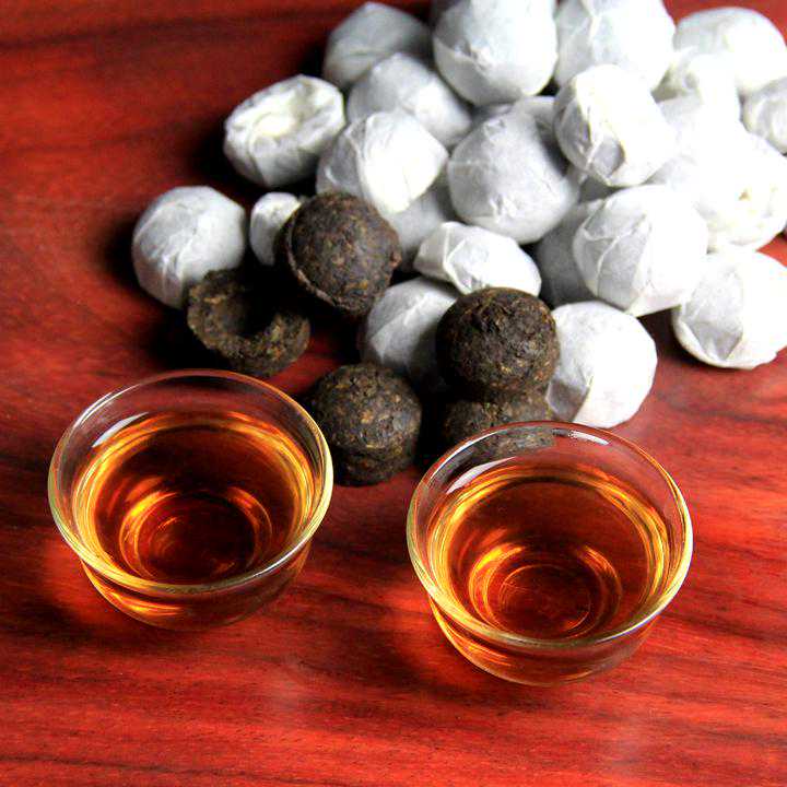 每粒小沱茶的年份均在10年以上,选用大树晒青茶为原料发酵而成,叶底褐红,肥壮粗大,入口有枣香,汤色红而透亮,回甜爽滑。