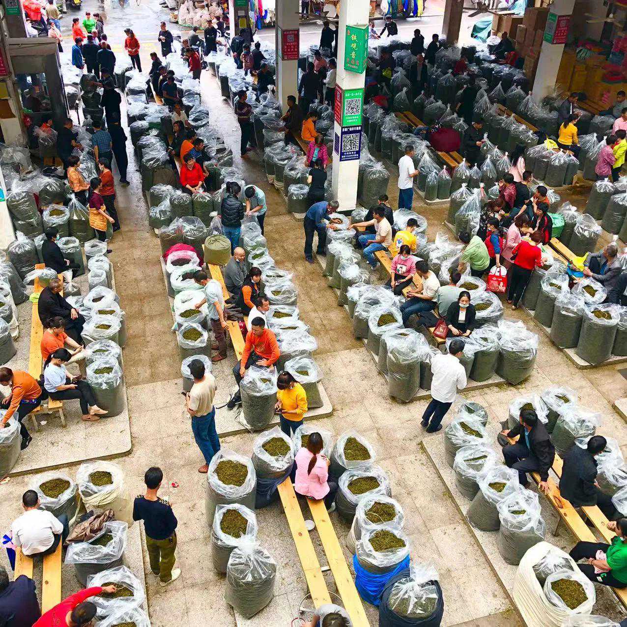 茶叶交易大厅里的铁观音,大部分是按袋批发的,看这一袋袋的茶叶,都是正宗的福建安溪铁观音,高山手工茶叶,纯天然,纯手工的,平均一袋有100斤的铁观音,非常的新鲜。当然了,如果有外地游客来市场旅游,也是可以找茶农买茶的,几斤铁观音,也是批发价。
