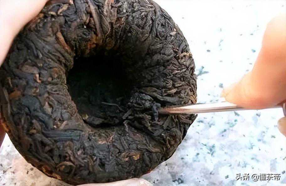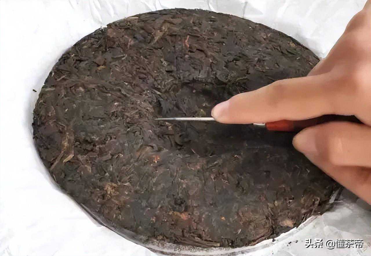 首先用茶针从外弧面以小角度插入,将茶轻轻撬松后将茶锥拔出,从相反的方向再次插入并将茶撬起,这样就可以较好的保持条索的完整。