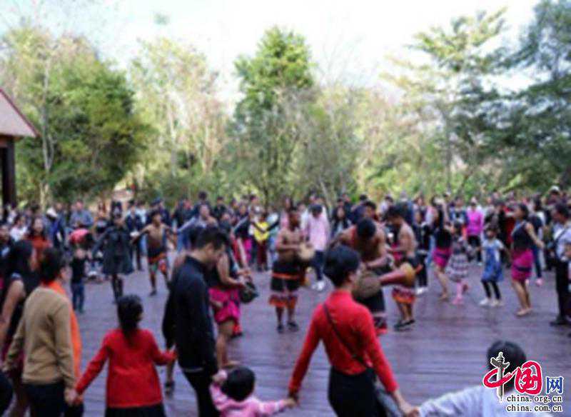 内容:在勐梭龙潭景区龙摩爷活动现场持续举办佤族趣味性民俗风情与传统歌舞表演。