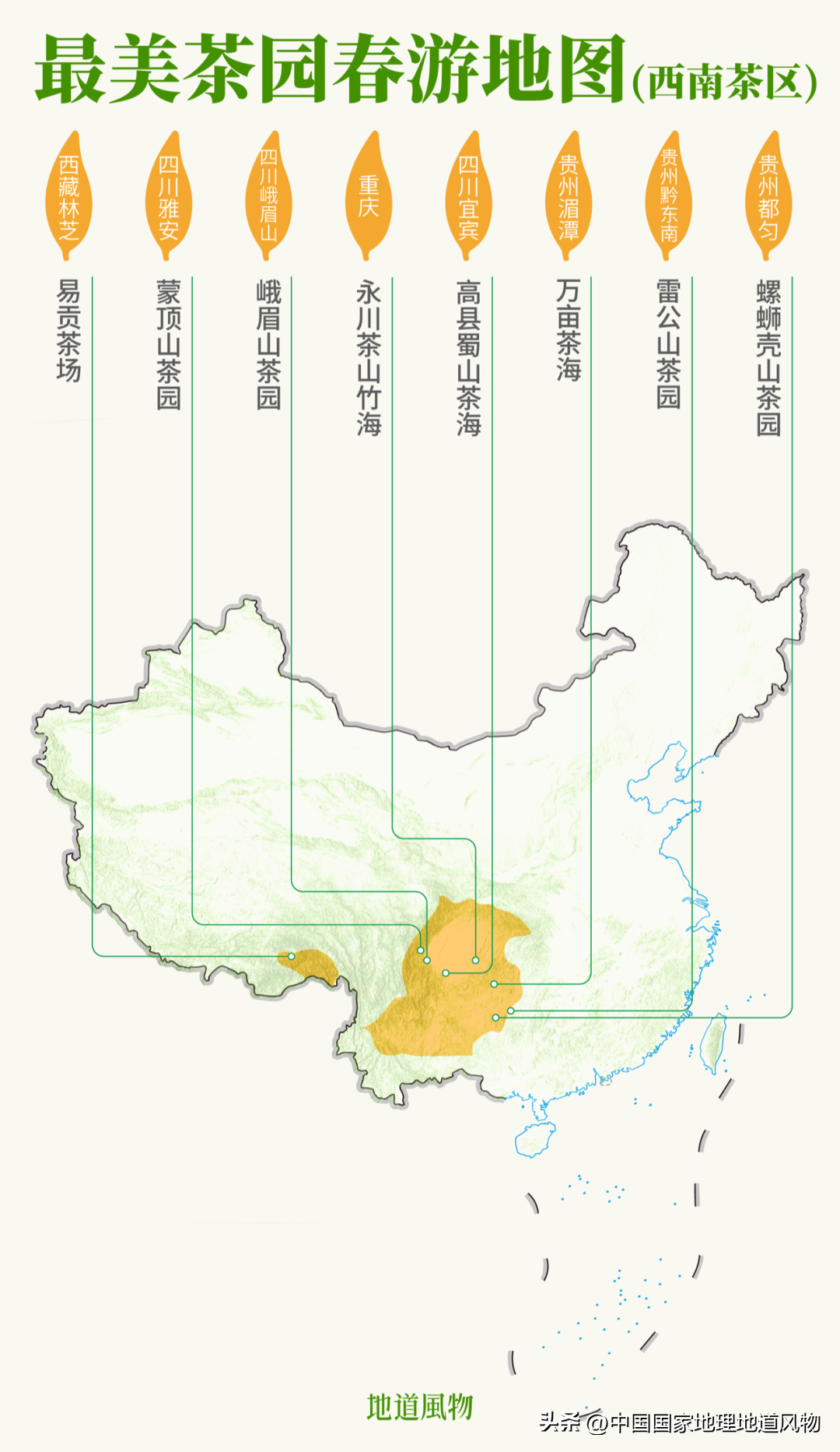 最美茶园春游地图(西南茶区)。