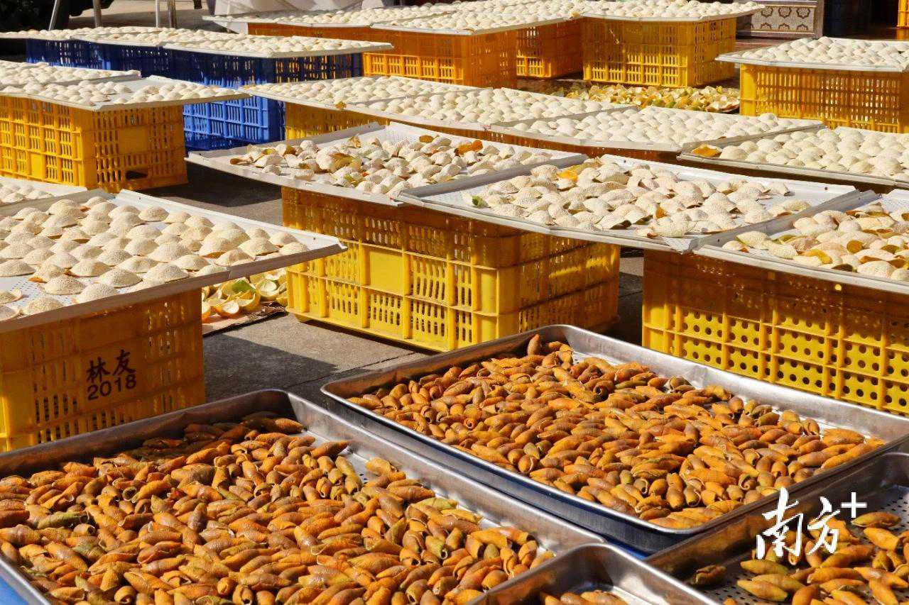 不用多久,柑橘和果皮的清香就飘进鼻腔——每年秋冬季的必修课“晒陈皮”拉开序幕。密密麻麻的柑皮铺满了院子里、阳台上、篮球场等一切可利用的空旷地,“晒陈皮”成为望牛墩镇的一道独特的乡村生活风景图。