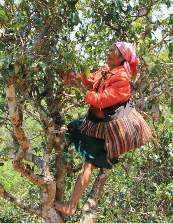 在这样的一个物种丰富且自成良好生态系统的深林中,高大的古茶树往往是以藤蔓攀附、青苔众生的形象出现。