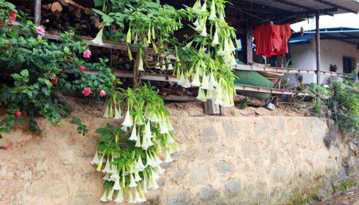 不过可要小心,这深山里的花园也是“藏龙卧虎”之地,花可不是乱嗅乱摸的。比如下图中的喇叭花,虽造型别致、外形靓丽,但却是有毒的。