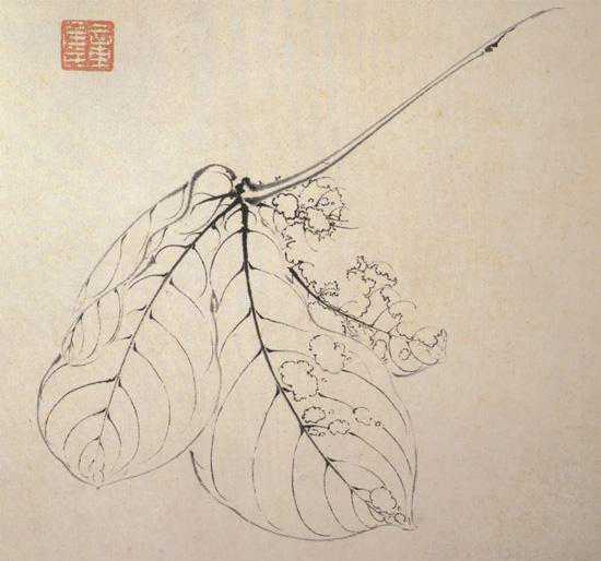 中国白描花鸟画用线的精髓与用墨的敏感度有着密不可分的联系。例如宋代林椿的《果熟来禽图》。动静结合,作者的“一笔造型”状物能力甚为精湛。画中作者通过对叶子每一笔从叶根至叶梢的曲直、方圆、转折、连断,墨之干湿、浓淡的变化讲究,概括、提炼对象的本质特征。使叶子出现枯荣、整残、凹凸、远近的空间感。其以活泼的形式表现出自然的情趣,虽然也符合审美的基本规律,但因比较工致而难以体现画家的情感和个性。