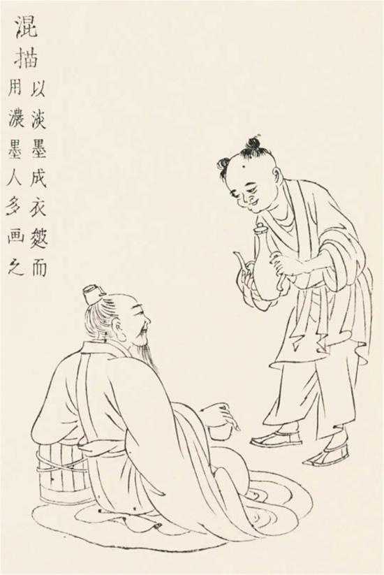 混描,以淡墨成衣皴,而用浓塞(混成),人多画之。