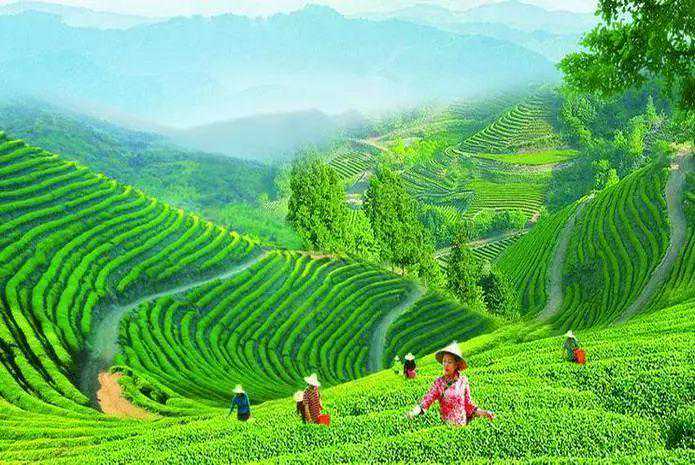 若是在一个有着薄雾的清晨到来,太阳刚刚露出光来,温暖柔和的洒向茶园,照得茶树上的新鲜地能掐出水来的新茶,闪闪发光。漫步在茶丛间,闻着茶树泥土特有的自然气味,心情真是说不出的愉悦。