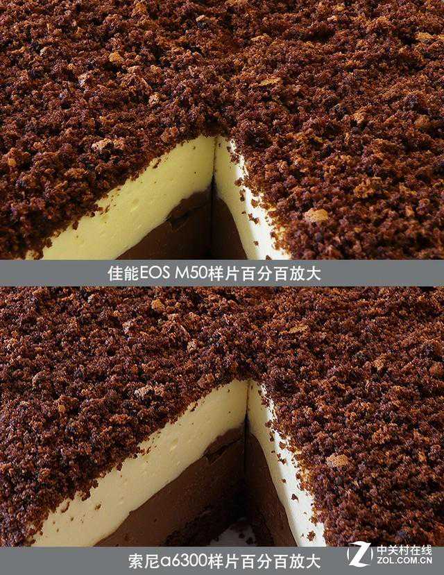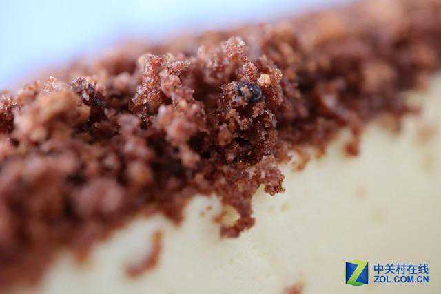 同是微距镜头,佳能28和索尼30都可以很好的表现出蛋糕丰富的细节。因为28镜头具备LED补光灯,所以佳能的照片整体更明亮一些,细节上也更丰富。