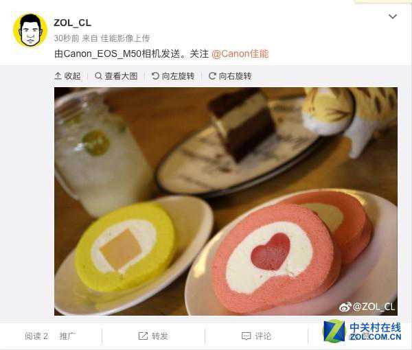 周大厨表示,配合触控屏幕佳能EOSM50在无线连接手机传图以及遥控相机拍摄上,相比于a6300更快速和便捷。通过相机直接发送微博的功能实在是太赞了。