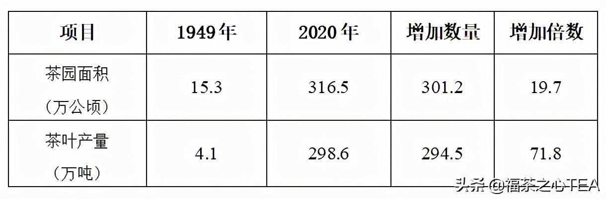 (1)茶叶生产:截至2020年止,中国茶业与1949年相比,无论是茶园面积,还是茶叶产量都有显著增长。详见如表。