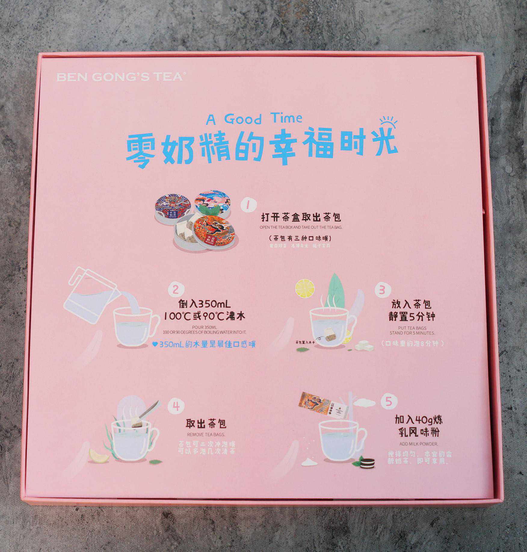 内含三盒原叶茶包,包括冻顶乌龙、栀子茉莉、蜜香珍芽3个口味,以及12小包零奶精炼乳风味粉,再也不用挤着去排队,随时随地随便冲泡。