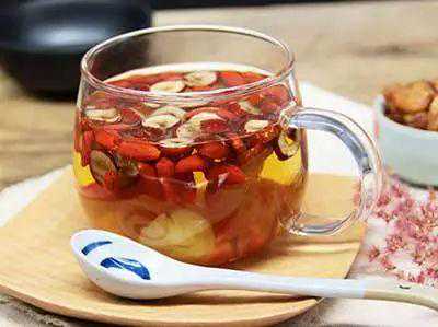 每次取桂圆、枸杞3-5克,红枣两颗,沸水冲泡3-5分钟即可。
