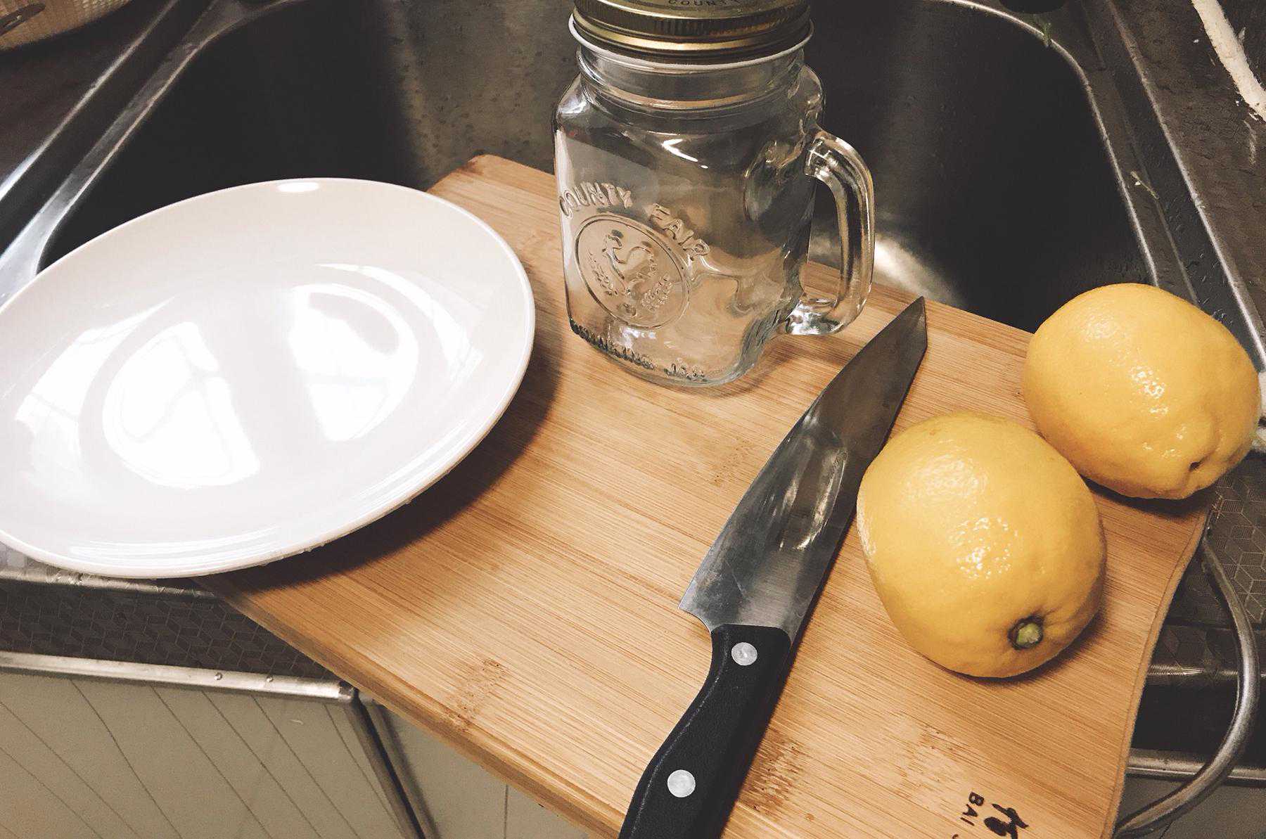 2.切柠檬之前,一定要用厨房纸巾吸干柠檬上的水份,砧板和水果刀上的水份也是,一定要保持干透。