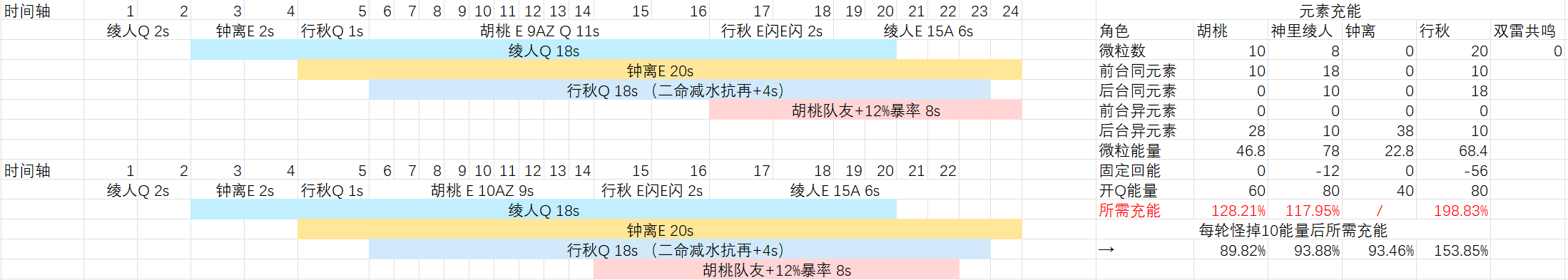 比较正常的数据,行秋的充能需求略高一些,胡桃大招能不能好其实影响不大,绫人能够充满。