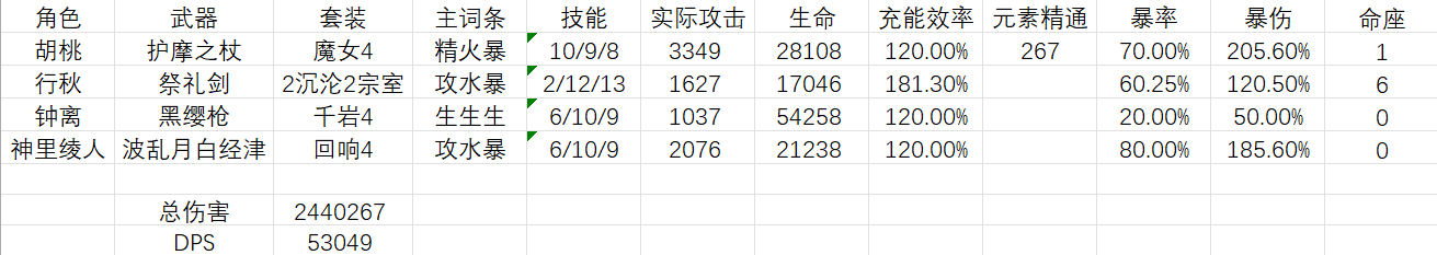 绫人进胡行钟的计算结果并没有达到预期的效果,我当时以为这个队伍把队友间联动拉满了,但算出来发现效果只能说正常,毕竟5wDPS打深渊绰绰有余了,只是队伍必不可能封神。