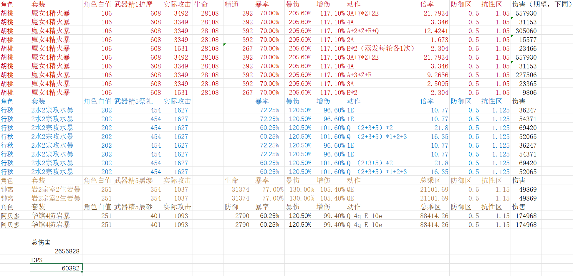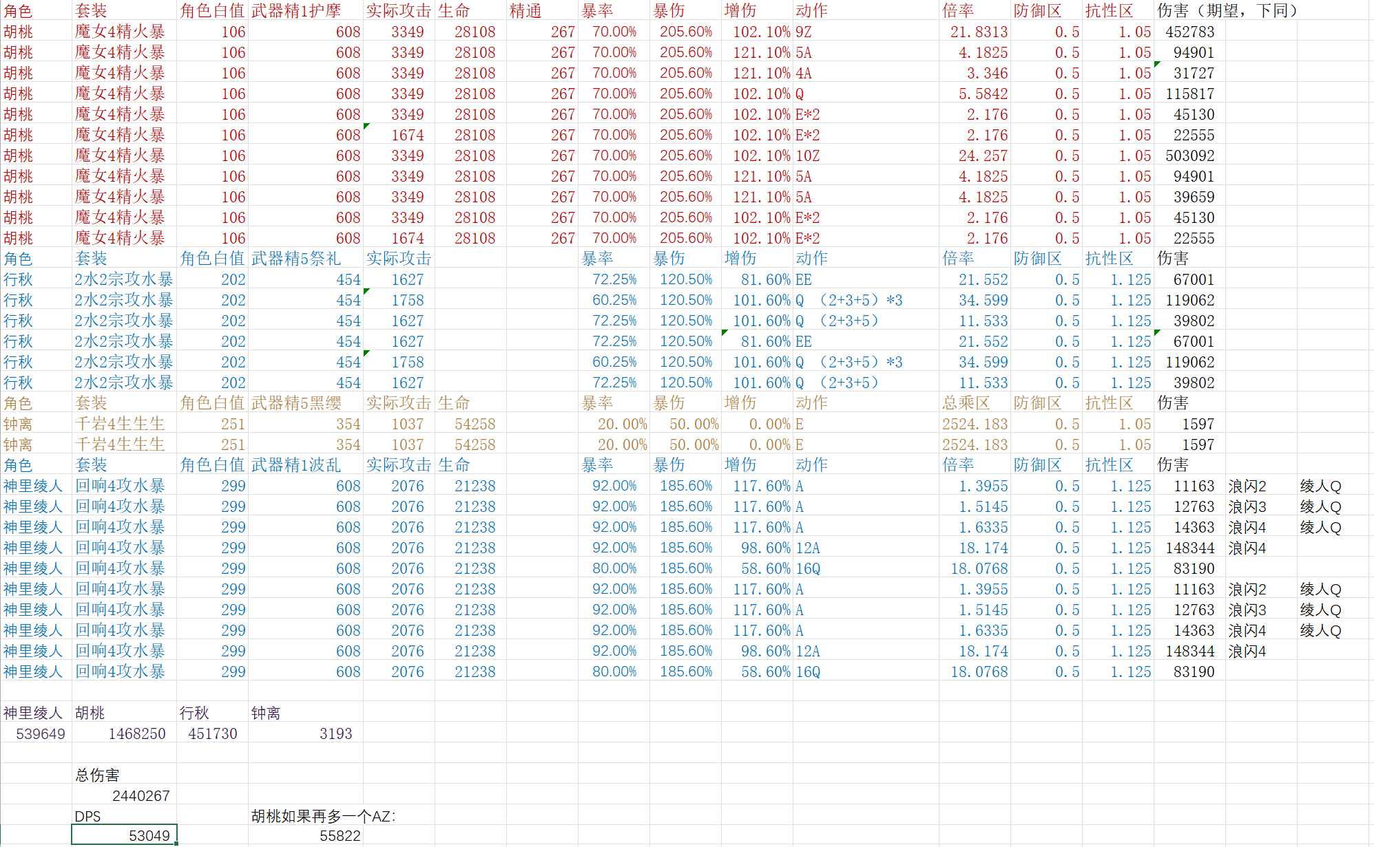 绫人作为胡行钟第四人的话,在纸面DPS上并没有获得优势,甚至还有一定差距。