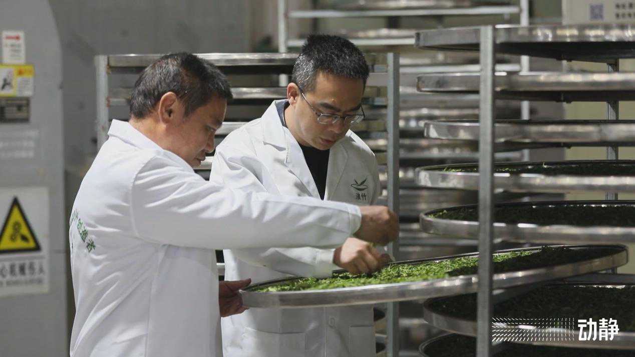 李琴来自省农业科学院茶叶研究所,这几天在茶叶生产车间,她一遍又一遍在教大家掌握茶叶理条的温度。李琴说:“做形这个环节主要是把杀青叶的水分快速散失掉,初步形成凤头羽直条的形状。我们要闻,闻它的这个里面的茶叶是有花香带栗香,还是绿润显毫的,就可以下机,进入到提香环节了。我们进到厂里面,希望进一步把茶叶的品质能够做到稳定一致。
