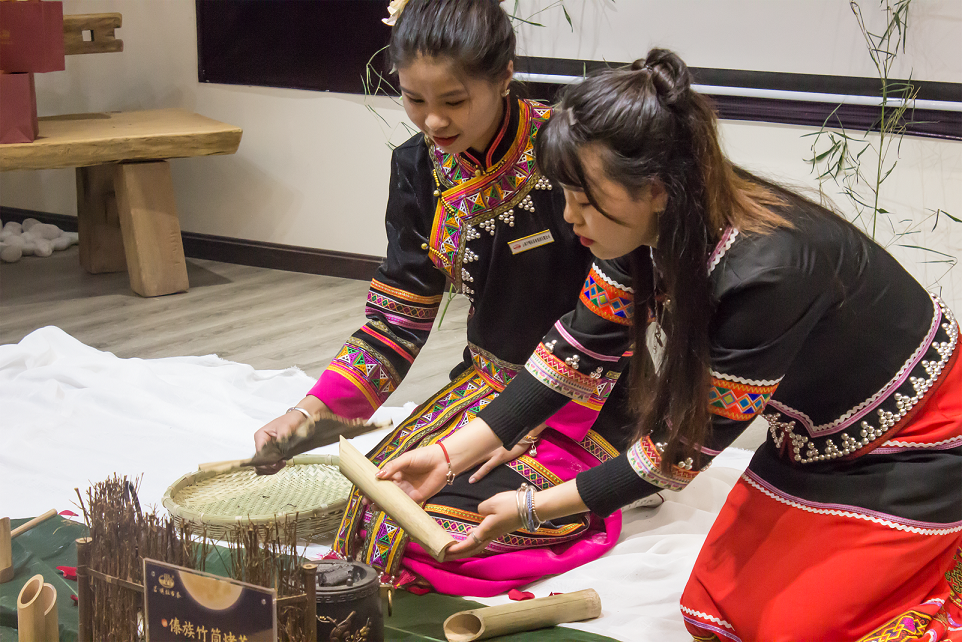 傣族用竹筒装着茶叶与山泉水烤茶、拉祜族用瓦罐烘烤出茶叶的香气加水冲饮月上窗头时,昆明雄达茶文化城的特色夜市里,这些你好奇的少数民族茶俗你都能近距离观看、体验到。