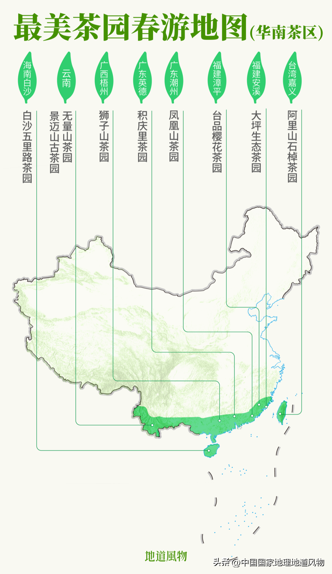最美茶园春游地图(华南茶区)。