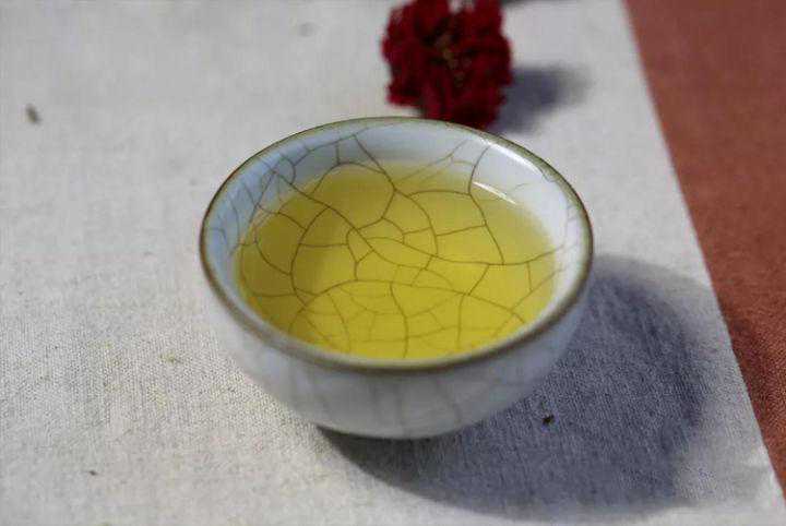 出汤后,汤色金黄,清透明亮,隐约能看到茶水中飘舞的茶茸,入口,苦味席卷整个口腔,冲击着意识,会忍不住让全身瞬间绽放一个小激灵,继而平复;