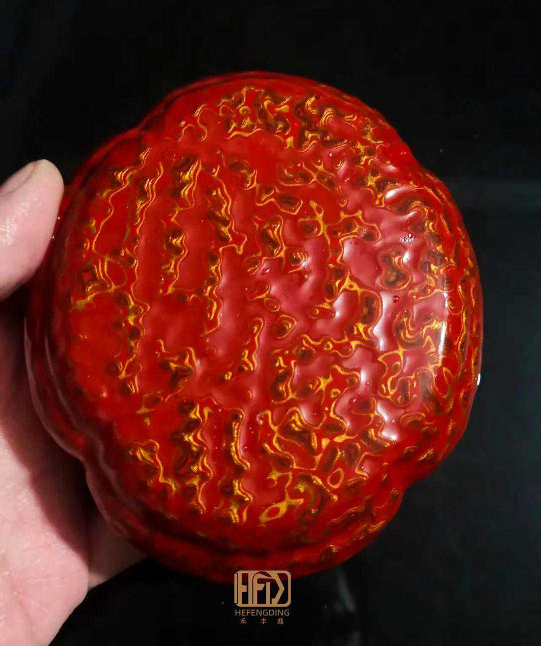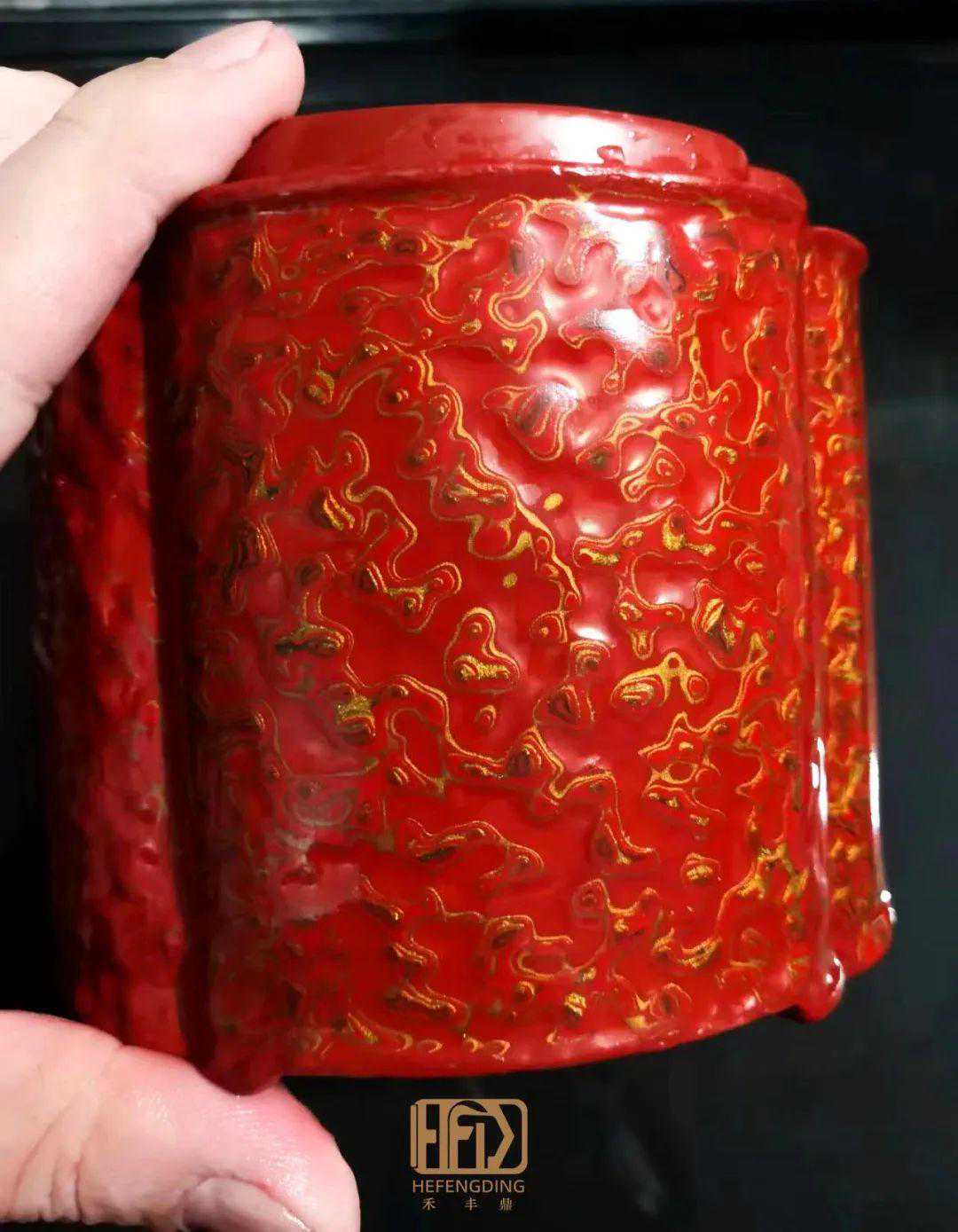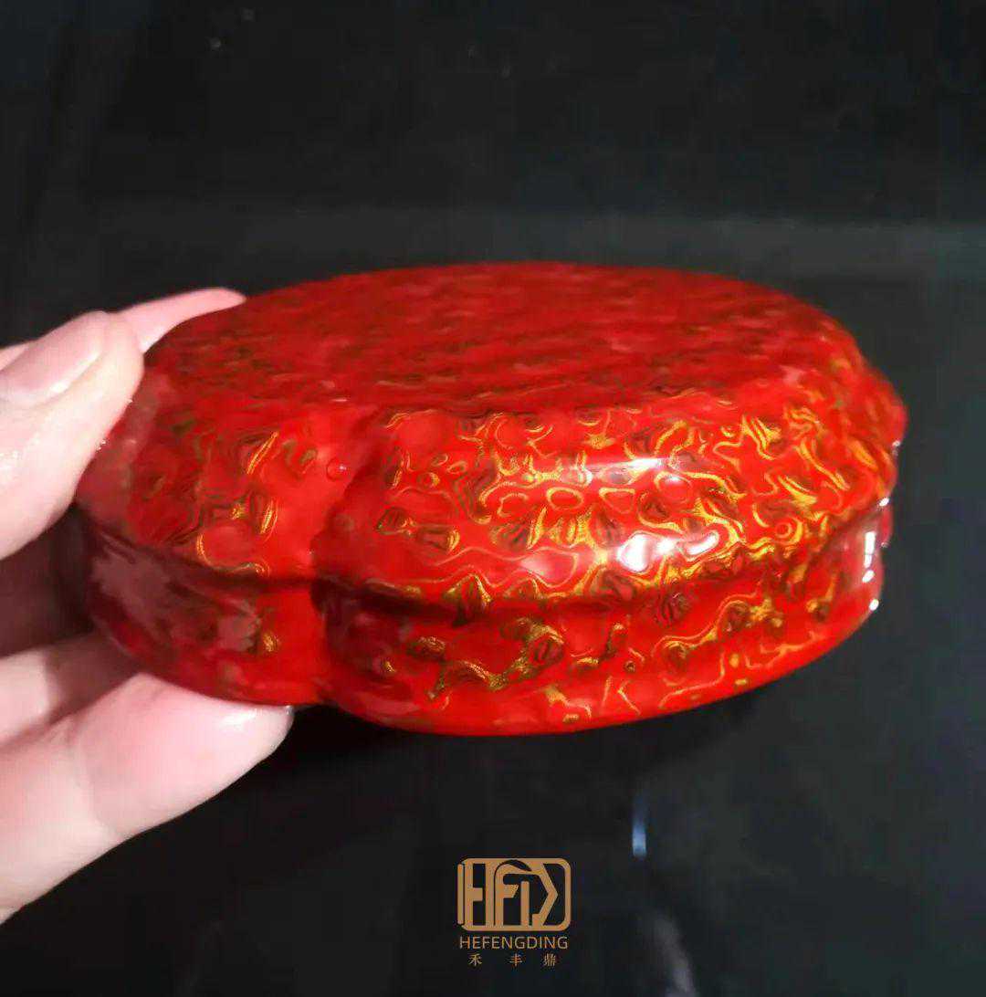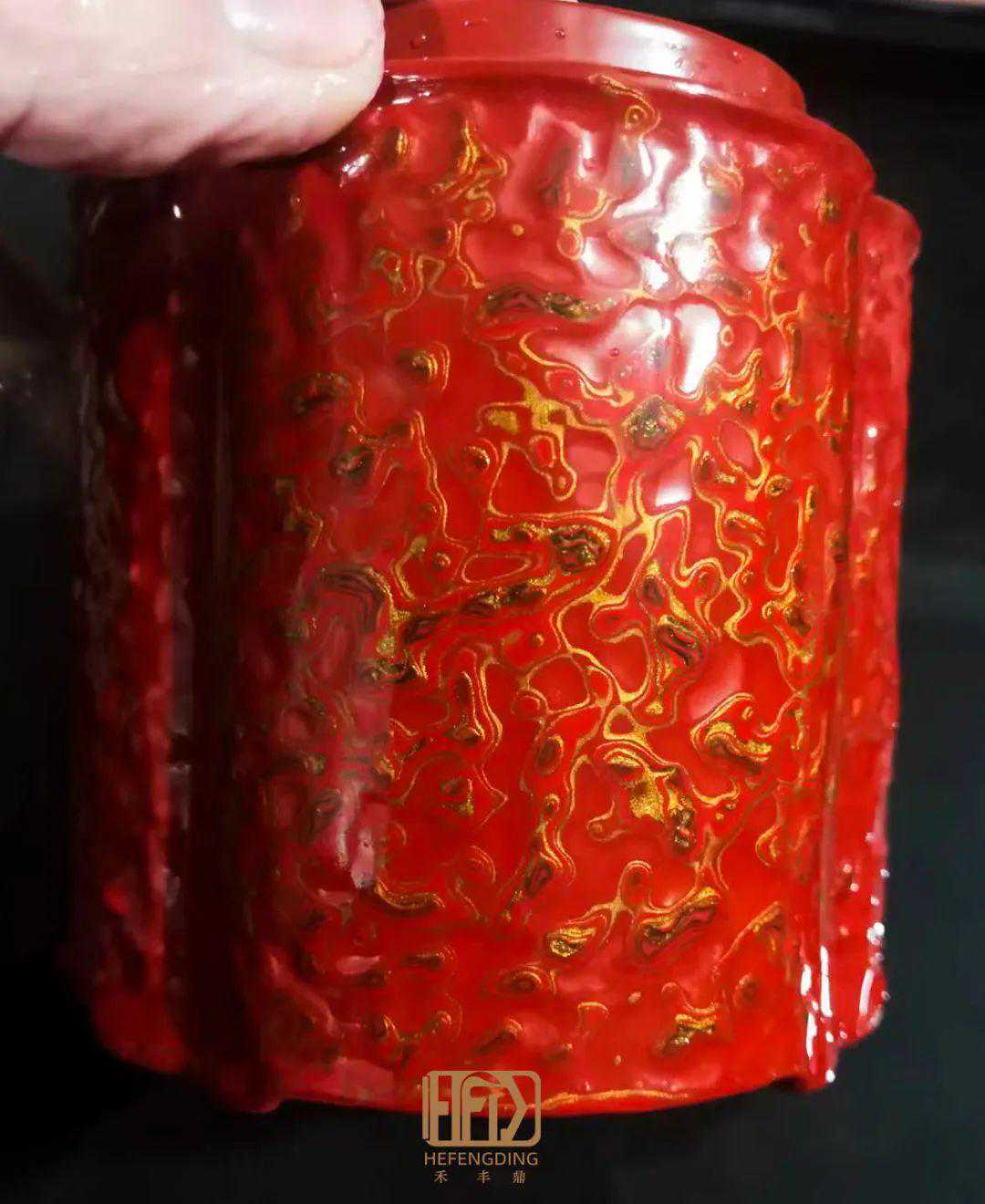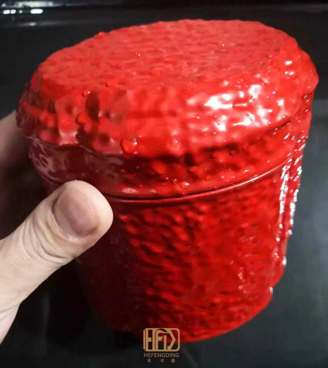 【禾丰鼎】即将完工的红金斑海棠口茶叶罐就极具观赏价值。